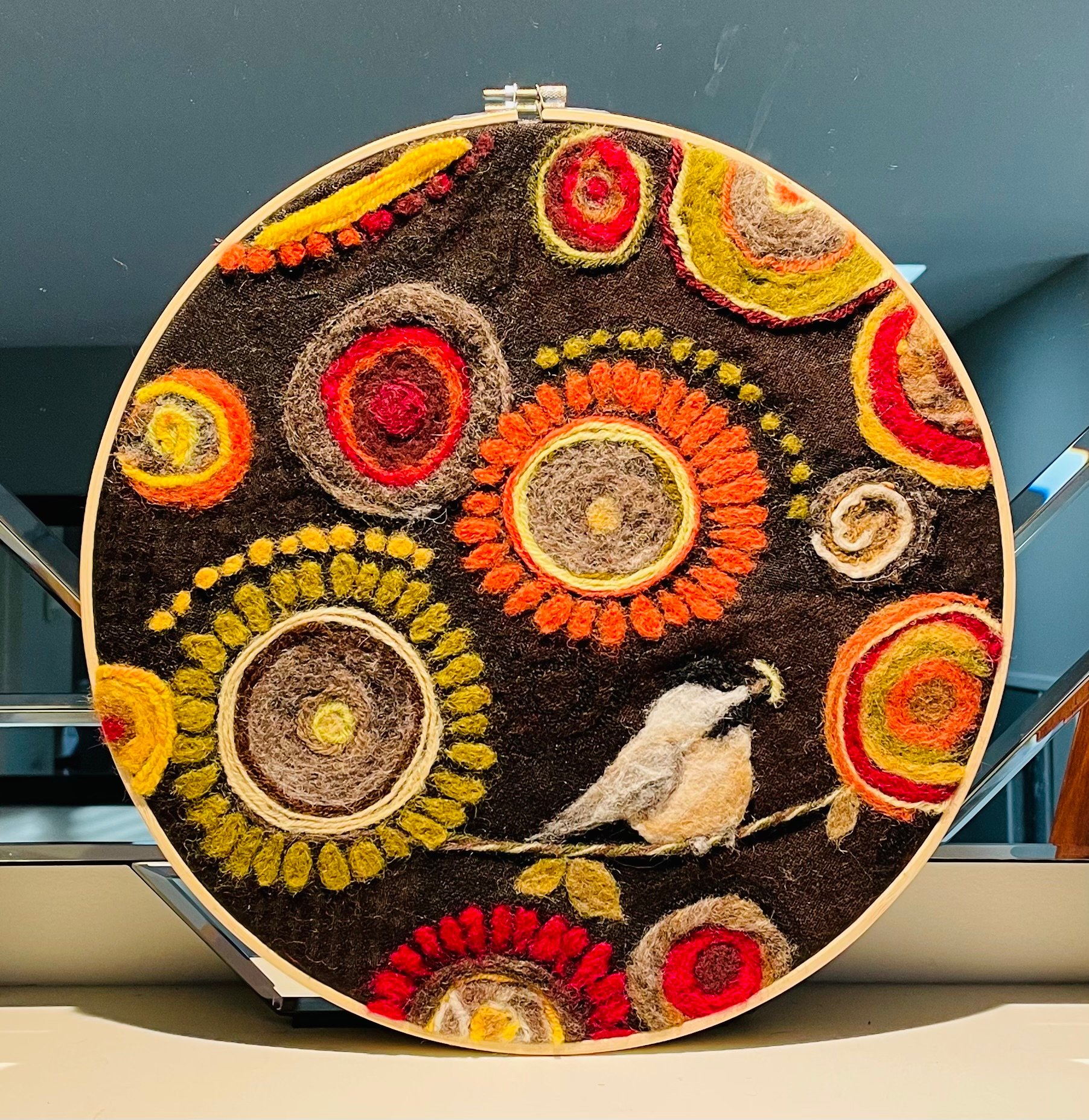 Hand felted picture in large hoop